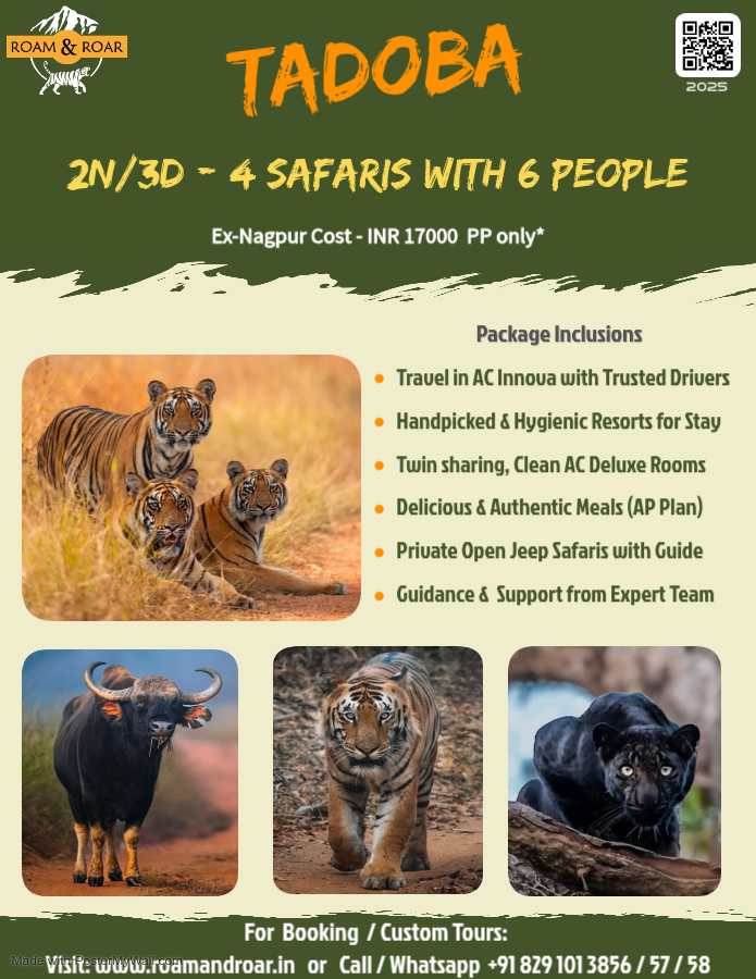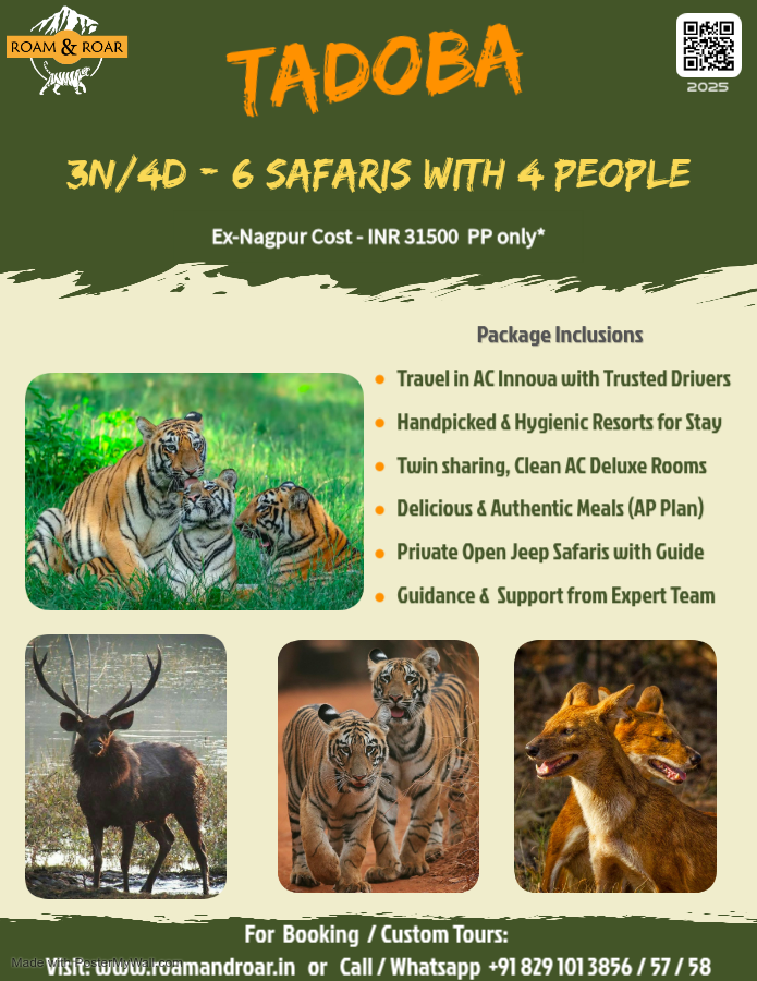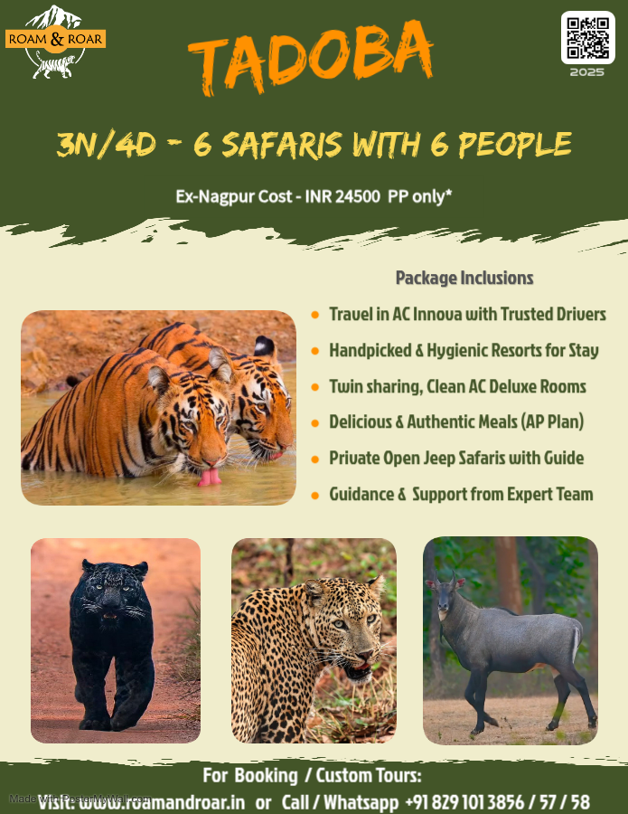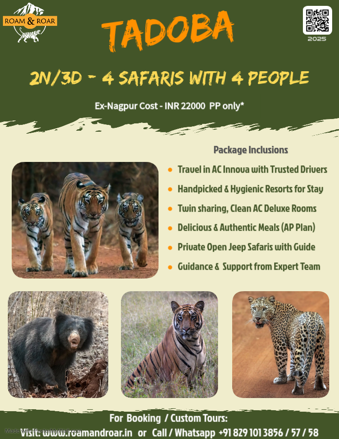 Established in 1995, Tadoba Andhari Tiger Reserve in Maharashtra is 140 km (3 hours) scenic drive from Nagpur. It is named after the local deity ‘Taru’ and the Andhari river. Its teak and bamboo forests host Bengal tigers, leopards, sloth bears, Indian gaur, wild dogs etc. and over 300 bird species. Best explored from October to June and closed on Tuesdays. Whether you’re a seasoned wildlife enthusiast or a first-time visitor, Tadoba provides a unique and memorable adventure in the heart of India’s wilderness.